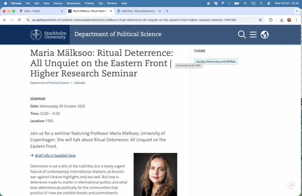 Prof. Maria Mälksoo gave an invited talk ‘The Baltic Way of Deterrence’ in the Indiana University Inner Asian and Uralic National Resource Center (IAUNRC) lecture series ‘Security across Central Eurasia in the 21st Century: From the Baltic Sea to the Mongolian Steppe’ on 12 November 2025 on Zoom.